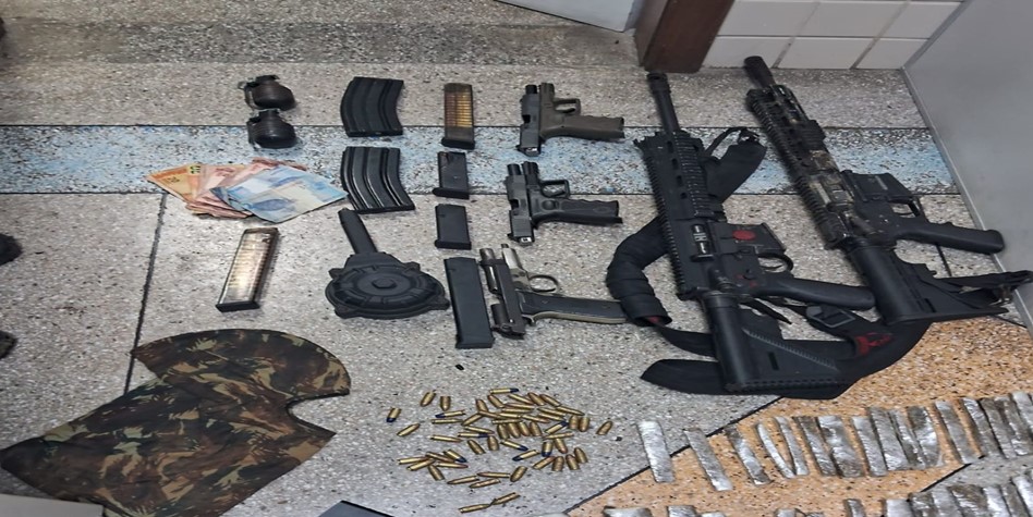 apreenderam cinco armas de fogo, carregadores, munições e granadas, no final da