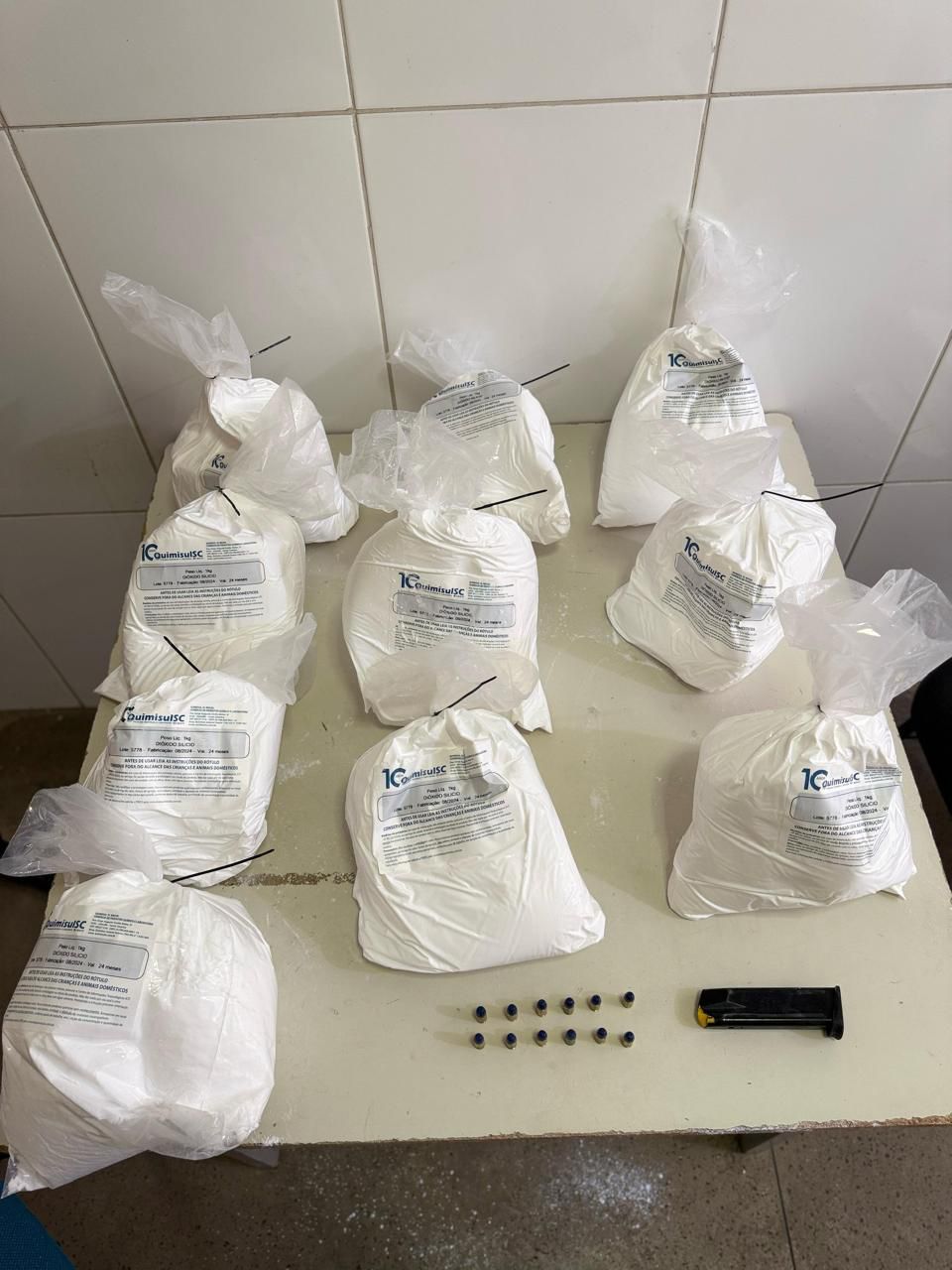 silÃcio, que é utilizado para o refino de cocaÃna, um carregador de pistola e