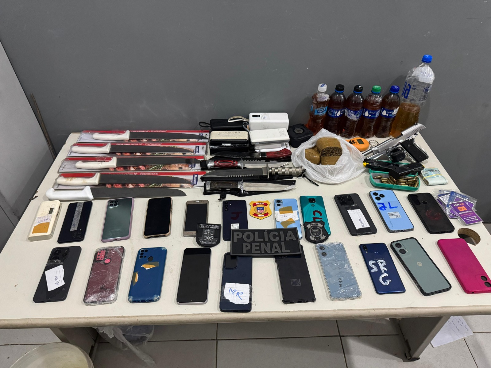 Foram apreendidos 24 aparelhos celulares, 12 facas, uma arma de fogo, 11 carregadores portáteis e 500 gramas de maconha, escondidos por ele em compartimentos do equipamento utilizado nos serviços de serralheria dentro da penitenciária. A abordagem foi realizada dentro da unidade prisional, com participação do diretor, diretor adjunto e policiais penais, após cerca de dois meses de monitoramento realizado pela Superintendência de Gestão Prisional (SGP), por meio da Diretoria de Segurança Prisional (DSP), com articulação direta com o Grupo de Atuação Especial de Combate ao Crime Organizado (Gaeco) e o Grupo de Atuação Especial de Execução Penal (Gaep), do MPBA.