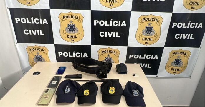 O suspeito foi encontrado em sua residência no distrito de São José de Itaporã. Durante a ação, os agentes apreenderam celulares, acessórios militares como coldres e cinto tático, além de fardas da Polícia Civil da Bahia.