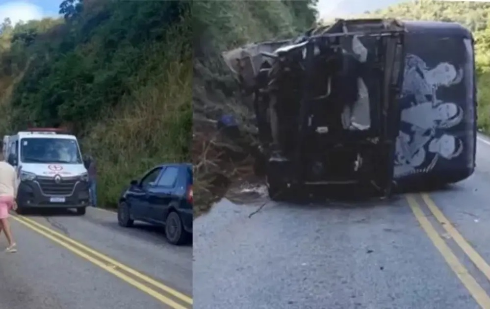 ônibus que transportava tombar na rodovia neste sábado (28). Segundo a Polícia
