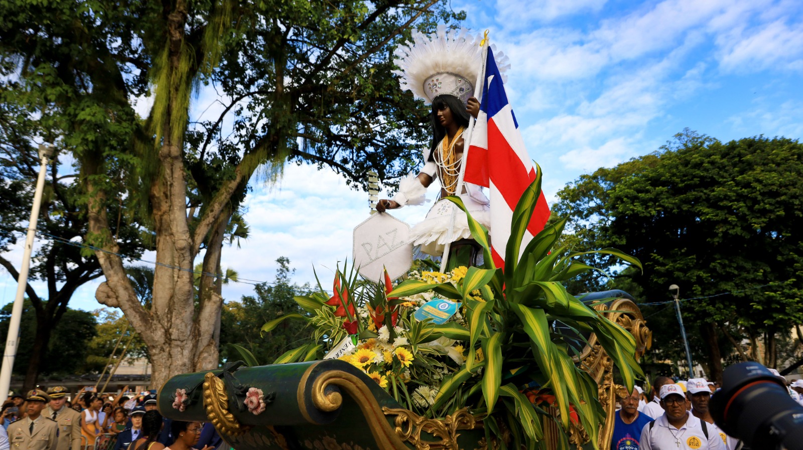 A indígena Mawi, de 16 anos, veio da aldeia Coroa Vermelha, em Santa Cruz Cabrália, Costa do Descobrimento, para participar do momento e falou sobre a importância da homenagem aos povos tradicionais na luta pela independência. “É a minha primeira vez no desfile e significa que estamos sendo lembrados, mostrados. E isso é muito bom. Estou gostando muito do desfile”, disse.