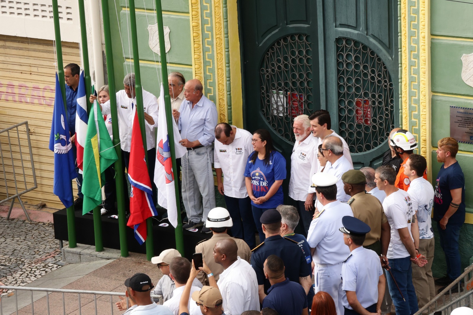 hasteamento das bandeiras na frente do Pavilhão Dois de Julho, o chefe do