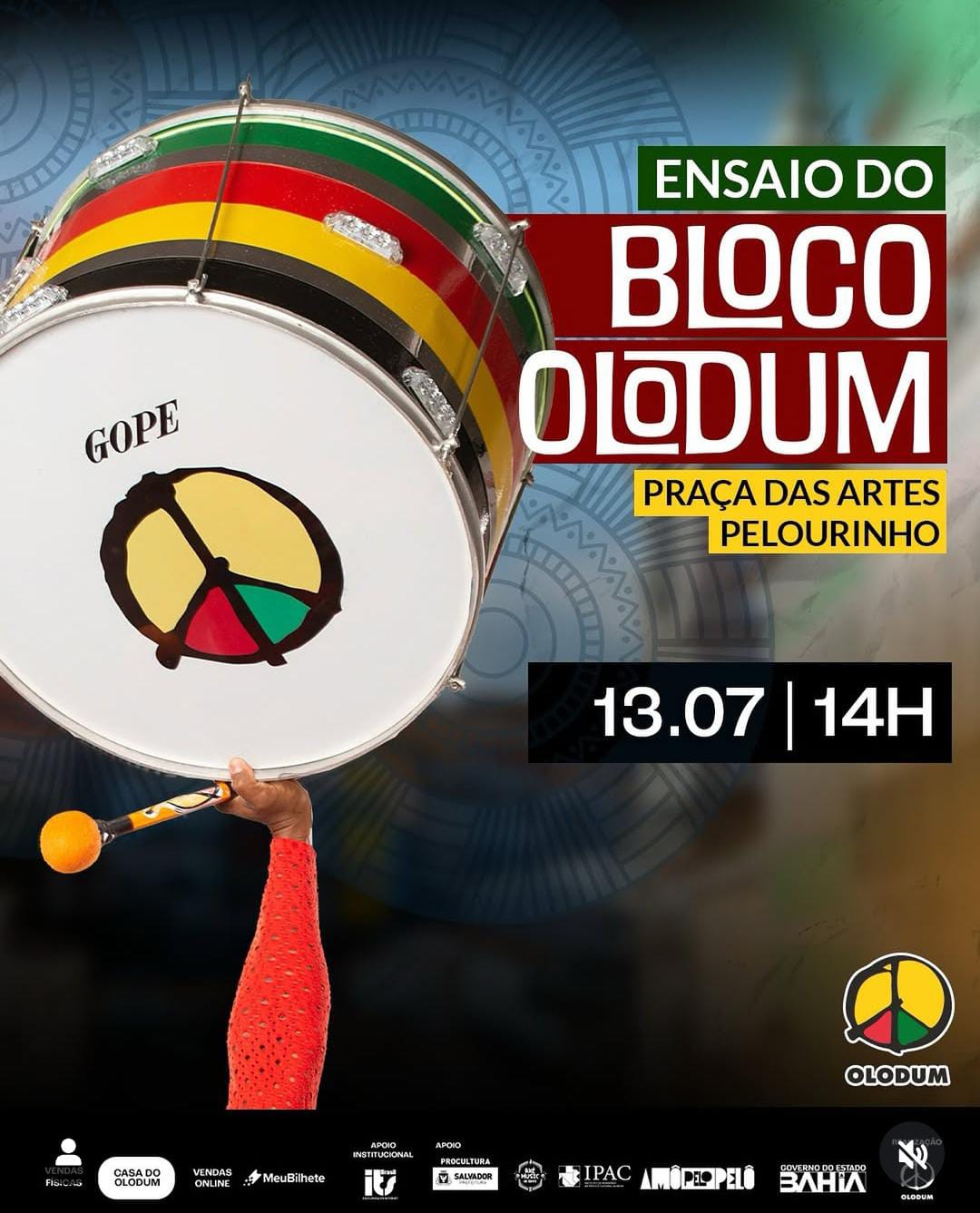 Vendas: https://www.meubilhete.com.br/ensaio-do-bloco-olodum-13-07 ou