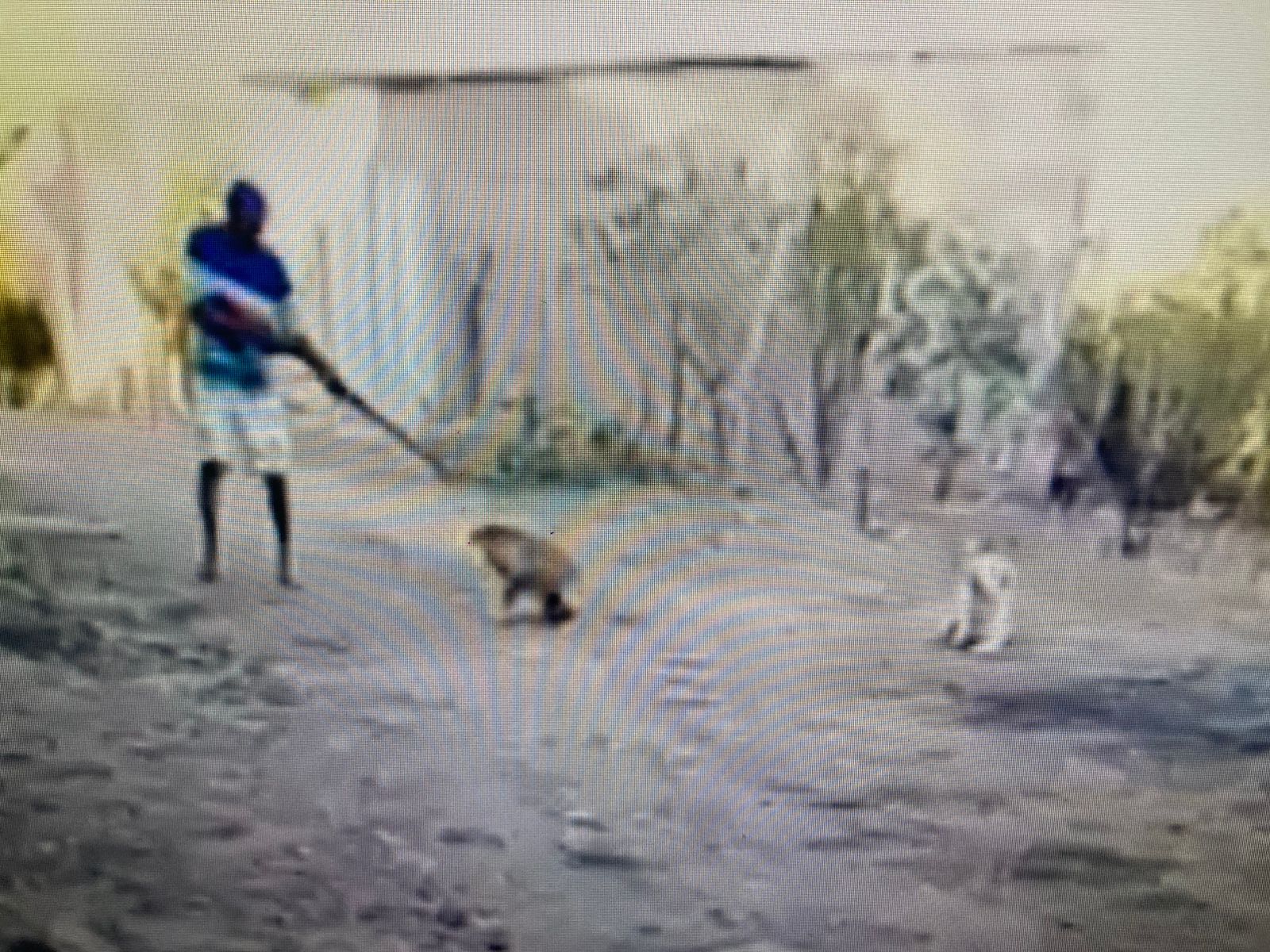 aparentemente assustado, o homem atira no cachorro, que morre logo em seguida.