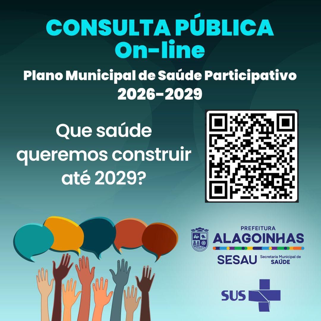 Está disponível consulta pública para a elaboração do novo Plano Municipal de Saúde de Alagoinhas, que irá orientar as políticas públicas da área no período de 2026 a 2029. Os moradores podem participar por meio do preenchimento de um formulário eletrônico, disponível no site oficial da Prefeitura, até o dia 16 de agosto.