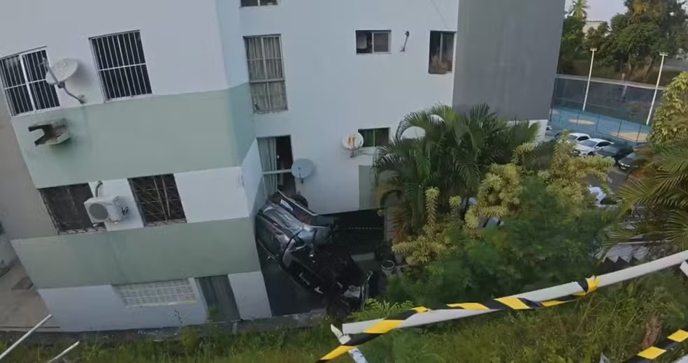 controle do carro, que desceu uma ribanceira e atingiu prédio no condomínio em
