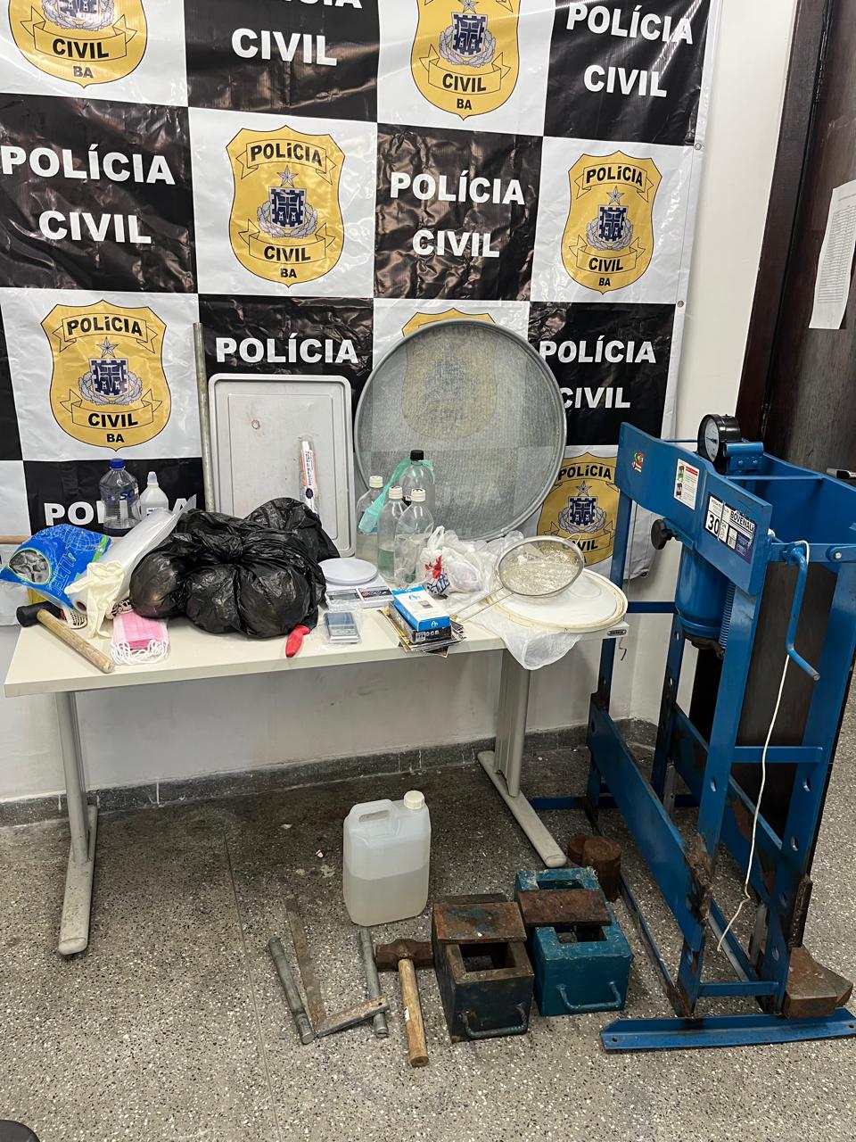 O laboratório funcionava em uma casa dentro de um condomínio situado na Rua Colônia Boa União, naquele distrito de Camaçari, na Região Metropolitana de Salvador (RMS). Dois homens, de 34 e 25 anos, surpreendidos dentro do imóvel, foram presos em flagrante. No local, foi encontrada uma prensa hidráulica, duas balanças de precisão, peneiras, embalagens, etiquetas para identificação de drogas, além de máscara de proteção.