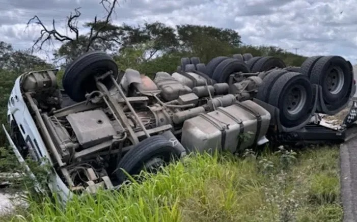 Motorista capota carreta após ser atacado por abelhas na BR-242 em Castro Alves