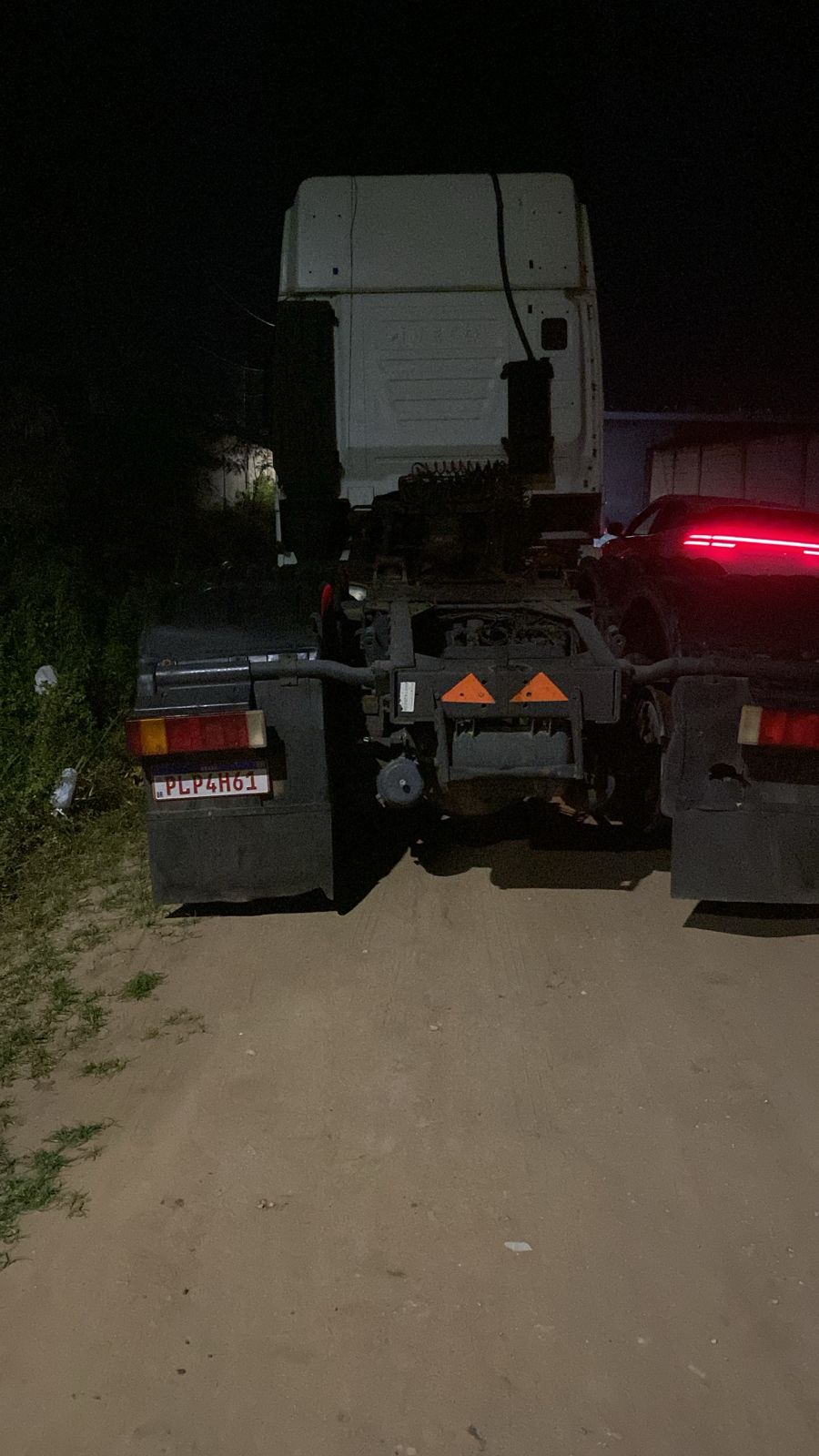 caminhão estava com a placa adulterada e em processo de desmontagem. O veículo