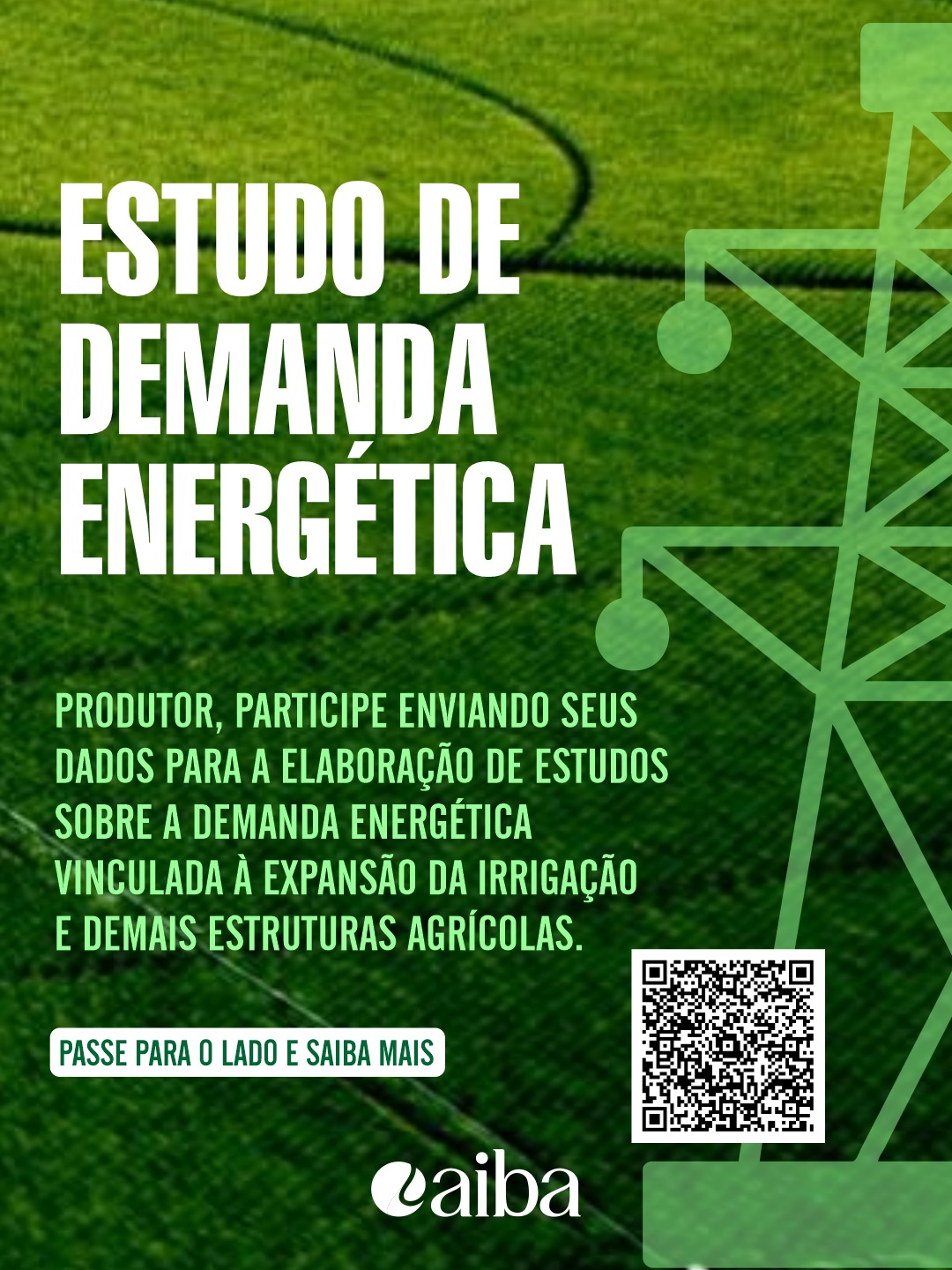 A Associação de Agricultores e Irrigantes da Bahia (Aiba) lançou um estudo inovador para mapear as demandas energéticas vinculadas à expansão da irrigação na região Oeste da Bahia. O objetivo é identificar as necessidades de energia elétrica para irrigação e estruturas agrícolas nos próximos 10 anos, por meio de uma pesquisa que necessita da participação dos agricultores irrigantes para o levantamento preciso de dados. Os produtores rurais podem participar e acessar o QR Code disponível no card da pesquisa ou por meio do link https://docs.google.com/forms/d/e/1FAIpQLSds2lWsQ1gkDE3A7qPlsGK0rGtnSOeWhJscQMbjdyOV2qP2Gg/viewform para responder informações sobre consumo elétrico, área irrigada, equipamentos, entre outros.
