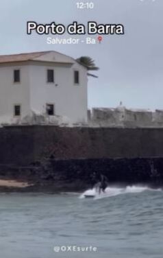O registro foi compartilhado nas redes sociais pelo surfista Nick, do perfil OxeSurf, que costuma documentar as condições do mar na capital baiana. Nas imagens, é possível ver praticantes de surf aproveitando as ondulações em uma área onde o mar, em geral, se assemelha a uma piscina.