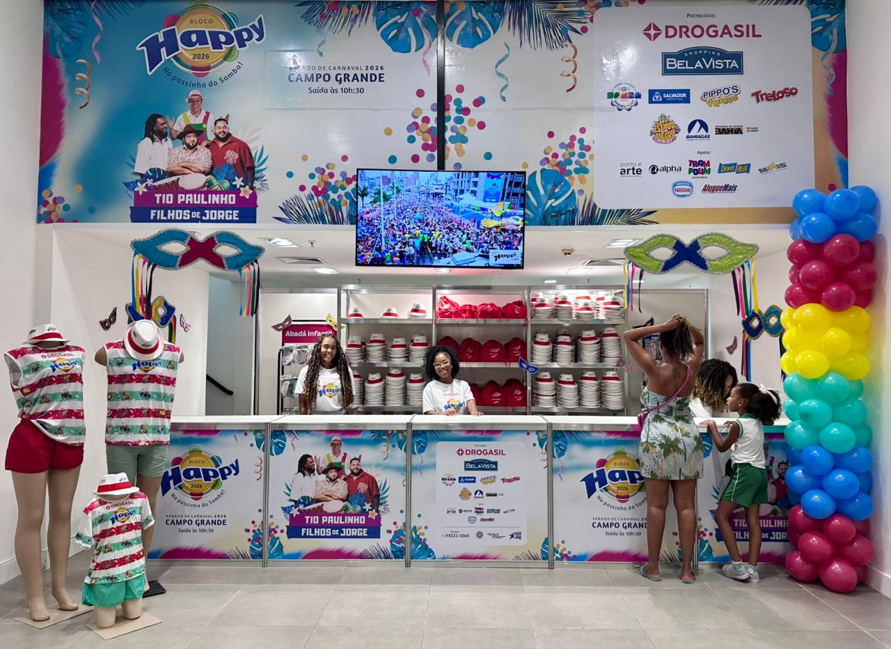 A expectativa para o Carnaval 2026 já toma conta do Bloco Happy, que iniciou hoje (10) a entrega dos abadás. A retirada acontece no Shopping Bela Vista, piso L2, das 9h às 22h. Tio Paulinho e a banda Filhos de Jorge convidam as famílias para o sábado (14/02) de carnaval no Bloco Happy. No circuito Campo Grande, a folia será marcada pela alegria, diversão e valorização da cultura e música baiana. Os últimos abadás do Bloco Happy estão à venda no stand de entrega do Shopping Bela Vista e na Central do CarnavalTicket Maker e Quero Abadá. “Não só as crianças mas também os pais estão super animados com o abadá temático que faz referência ao samba. Ao invés de bonés, vamos usar chapéu de sambistas”, antecipa Tio Paulinho.